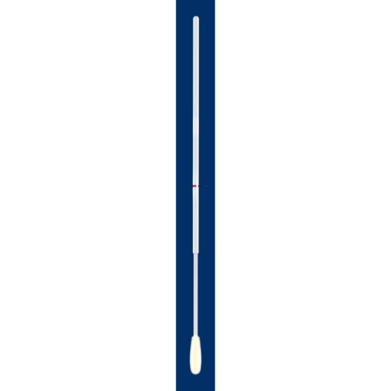 Wacik pokrywający zakończenie wymazówki jest wykonany z krótkich włókien nylonu ułożonych prostopadle. |